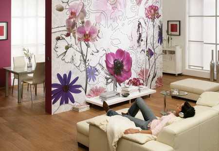 В последнее время всю большую популярность приобретают 3D обои для стен. Очень красиво смотрятся на фото природные мотивы и живописные уголки. Цветы идеально подчеркнут любой интерьер в стиле минимализм или классический стиль.