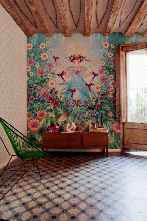 Пестрые обои лучше использовать в сочетании со спокойными цветами, иначе придется хорошенько подумать, как их можно декорировать, чтобы они вписались в интерьер.