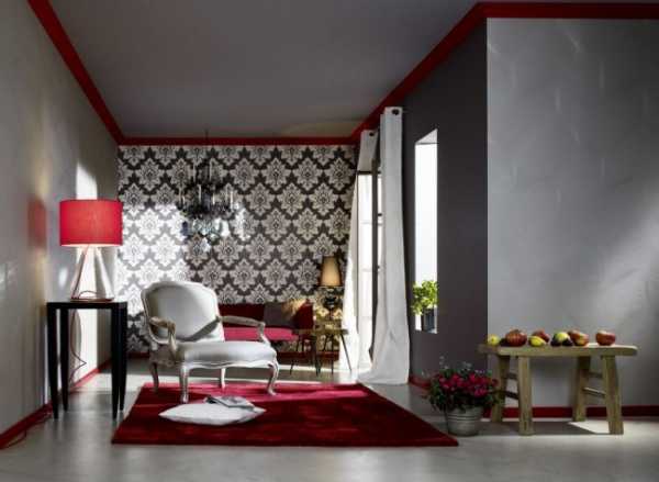 Обои для зала красного цвета и тона выбирают сильные и очень уверенные в себе люди, так как красный считается доминантным цветом. Он концентрирует в себе огромную энергию и ярко выраженную страсть, поэтому в оформлении стен будет придавать не только торжественный вид, но и некую нарядность комнаты.