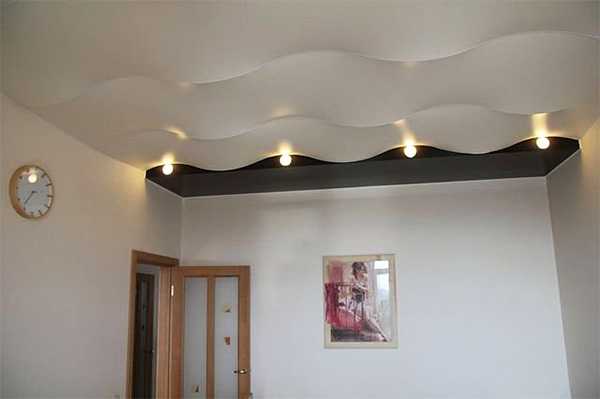 ΡΠ΅ΡΠ΅Π½ΠΈΠΉ ΠΏΠΎΡΠΎΠ»ΠΊΠ°, ΠΊΠΎΡΠΎΡΡΠΉ Ρ Π³ΠΎΡΠ΄ΠΎΡΡΡΡ ΠΌΠΎΠΆΠ½ΠΎ Π΄Π΅ΠΌΠΎΠ½ΡΡΡΠΈΡΠΎΠ²Π°ΡΡ Π³ΠΎΡΡΡΠΌΠΠ° ΡΠΎΡΠΎ Π½ΠΈΠΆΠ΅: Π΄Π²ΡΡ ΡΡΠΎΠ²Π½Π΅Π²ΠΎΠ΅ ΡΠ΅ΡΠ΅Π½ΠΈΠ΅ ΠΏΠΎΡΠΎΠ»ΠΊΠ° ΠΈΠ· Π³ΠΈΠΏΡΠΎΠΊΠ°ΡΡΠΎΠ½Π°, ΠΎΡΠΎΡΠΌΠ»Π΅Π½Π½ΠΎΠ΅ Π² Π²ΠΎΠ»Π½ΠΎΠΎΠ±ΡΠ°Π·Π½ΡΡ Π»ΠΈΠ½ΠΈΡΡ . ΠΠΎΠ½ΡΠ°ΠΆ ΠΏΠΎΠ΄ΠΎΠ±Π½ΠΎΠΉ ΠΊΠΎΠ½ΡΡΡΡΠΊΡΠΈΠΈ ΠΏΡΠΎΡΠ΅, ΡΠ΅ΠΌ ΠΌΠ½ΠΎΠ³ΠΎΡΡΠΎΠ²Π½Π΅Π²ΡΠΉ ΠΊΠ°ΡΠΊΠ°Π΄, Π° Π²ΡΠ³Π»ΡΠ΄ΠΈΡ ΠΊΠΎΠΌΠ½Π°ΡΠ° ΠΏΡΠΈ ΡΡΠΎΠΌ Π½Π΅ ΠΌΠ΅Π½Π΅Π΅ ΡΠ»Π΅Π³Π°Π½ΡΠ½ΠΎ ΠΈ ΡΠΈΠΌΠΏΠ°ΡΠΈΡΠ½ΠΎ, Π·Π°ΡΠΎ ΠΏΠΎ ΡΡΠΎΠΈΠΌΠΎΡΡΠΈ Π²ΡΠΉΠ΄Π΅Ρ Π½Π°ΠΌΠ½ΠΎΠ³ΠΎ Π΄Π΅ΡΠ΅Π²Π»Π΅.