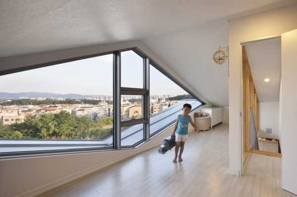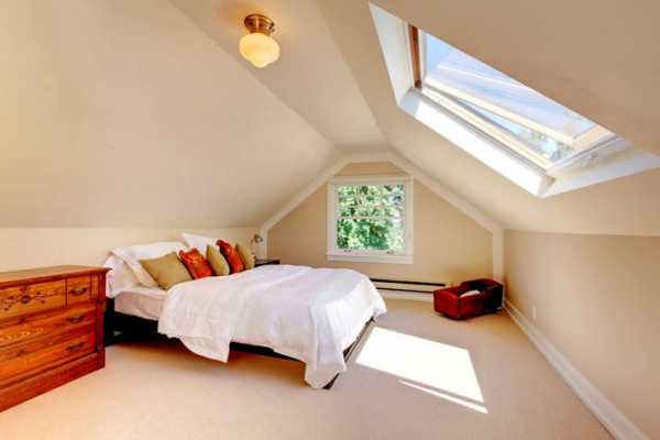 Одно из таких решений, к примеру, установка больших окон прямо в наклонной части крыши. Если разместить в таком помещении спальню, по ночам можно любоваться звёздным небом не вставая с постели