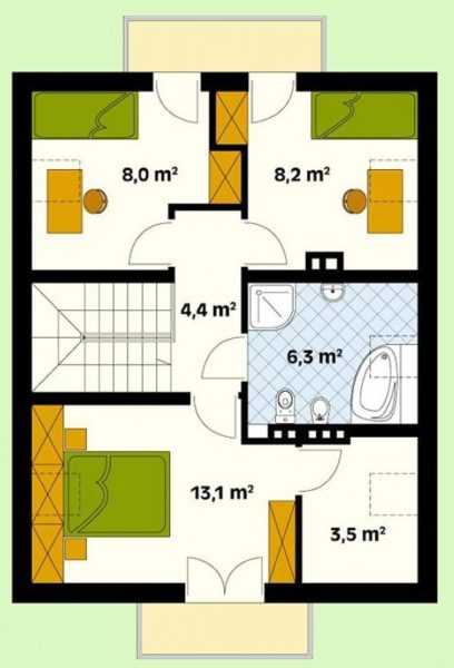 План дома 8 на 8 со спальней на втором этаже