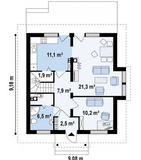 Пример классической планировки дома 9х9