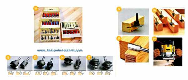 Главный расходник — фрезы. Каждая предназначена для выполнения определённых операций и подбирается с учётом размера и формы выемки или отверстия. Существуют следующие разновидности фрез: