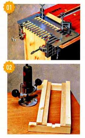 Конструкция универсального фрезеровального инструмента предусматривает использование различных насадок и направляющих приспособлений. Это значительно увеличивает функционал и точность обработки. Для этого используют специальные направляющие шины, упоры, копировальные кольца и шаблоны (кондукторы), циркуль-штанги и прочие приспособления.