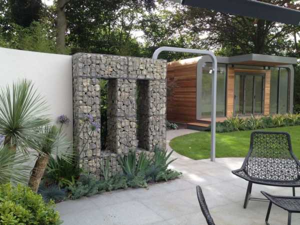 Дизайнеры сегодня пошли ещё дальше. В технике габионов создают невероятно красивые элементы декора в виде огромных горшков, ваз, ящиков и так далее. Встраивают в саму систему дорожки, калитки, ворота и даже придумывают отдельные сооружения для бытовых нужд.