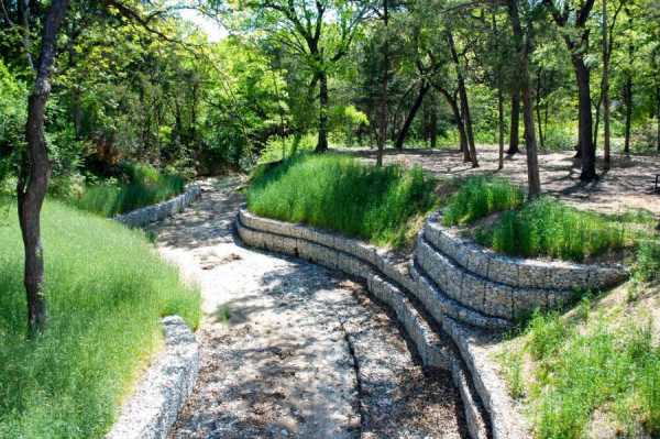 Чаще всего мы встречаем габионы прямых строгих линий, это самый дешевый вариант, но воображению их создателей нет предела.