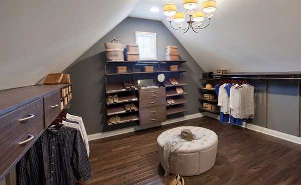 Однозначно преимуществом закрытой комнаты для хранения вещей является то, что ее нет надобности показывать кому-либо. Именно это влияет на то, что оформить ее можно в первую очередь, практичной и функциональной, не учитывая стиль и моду. Поэтому совершенно уместно будет оформить эту комнату в стиле лофт, классика, минимализм.