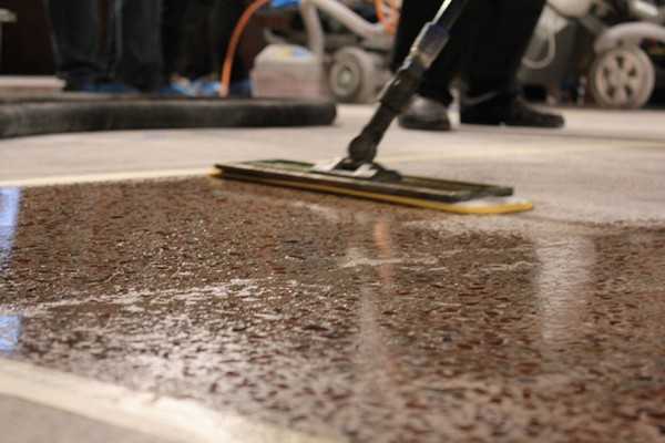 - ΠΠ°ΡΠΈΡΠ°Π΅ΠΌΠ°Ρ ΡΡΠ΅Π½Π° ΠΈΠ»ΠΈ ΠΏΠ΅ΡΠ΅ΠΊΡΡΡΠΈΠ΅ ΠΎΡΠΈΡΠ°Π΅ΡΡΡ ΠΎΡ ΠΏΡΠ»ΠΈ, Π³ΡΡΠ·ΠΈ, ΠΌΠ°ΡΠ»ΡΠ½ΡΡ ΠΏΡΡΠ΅Π½, ΡΠ»Π΅Π΄ΠΎΠ² ΠΊΡΠ°ΡΠΊΠΈ ΠΈ ΡΡΠ°ΡΠΎΠ³ΠΎ ΠΏΠΎΠΊΡΡΡΠΈΡ. Π Π°Π·ΠΌΡΠ³ΡΠ΅Π½Π½ΡΠ΅ ΡΠ»ΠΎΠΈ Π±Π΅ΡΠΎΠ½Π° Π²Π·Π»Π°ΠΌΡΠ²Π°ΡΡΡΡ ΠΎΡΠ±ΠΎΠΉΠ½ΡΠΌ ΠΌΠΎΠ»ΠΎΡΠΊΠΎΠΌ, Π°ΡΠΌΠ°ΡΡΡΠ° ΠΏΠΎΠΊΡΡΠ²Π°Π΅ΡΡΡ Π°Π½ΡΠΈΠΊΠΎΡΡΠΎΠ·ΠΈΠΉΠ½ΡΠΌ ΡΠΎΡΡΠ°Π²ΠΎΠΌ.