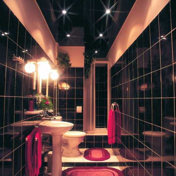 Не менее важным преимуществом является и то, что глянцевая поверхность значительно увеличивает помещение. Темные оттенки полотка создают эффект «второго этажа».