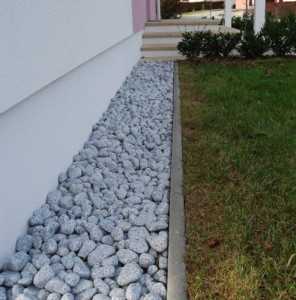 Стоит также обратить внимание на цвет щебня или гравия, который следует тщательно подобрать по цвету фасада дома, чтобы отмостка вокруг дома создавала гармоничное единство дома и сада.