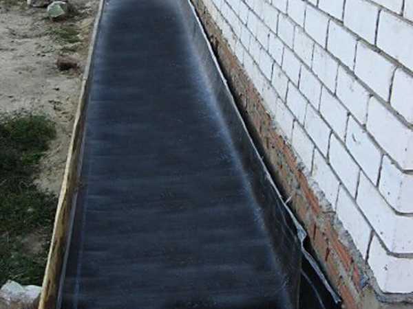 - Покрыть глину гидроизоляционным материалом: рубероидом, ПВХ или полиэтиленовой пленкой. Для этого необходимо раскатать рулон гидроизоляции по периметру здания, делая небольшой напуск на фундамент. Прикрепить его прижимными рейками к поверхности фундамента. При необходимости устройства стыков гидроизоляционного ковра, сделать большой нахлест материала и обмазывать место стыка битумной мастикой.