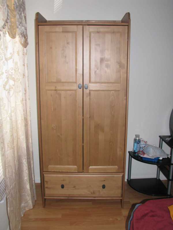 ТОДАЛЕН — еще одна мебель ИКЕА. ТОДАЛЕН предлагает несколько типов гардеробов: с раздвижными дверцами, с дверцами на петлях, с ящиками, угловую конструкцию. В 2-х секционный гардероб входит отделение со штангой для одежды и двумя закрывающимися дверями и отделение, состоящее из 3-х выдвижных ящиков, оснащенных специальным стопором, и полки для белья.