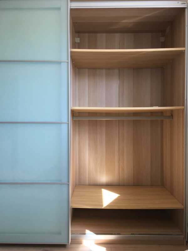 Также Икеа предлагает на выбор два типа дверей: навесная или раздвижная. Менеджеры магазина Икеа предложат вам семь оттенков для шкафа, начиная со светлого, заканчивая темным.