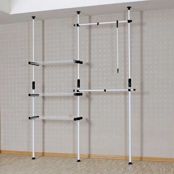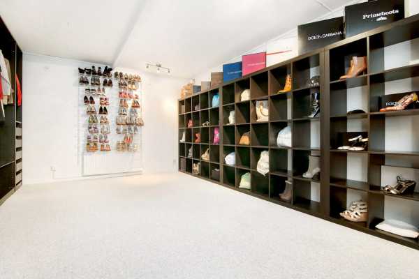 Гардеробную делают под архитектурные особенности помещения, а так же с учетом пожеланий заказчика. Этот «шкаф» с антресолями и полками порою даже не имеет задней и боковых стенок, так как все элементы приделаны к специальным стойкам-распоркам или к стене.