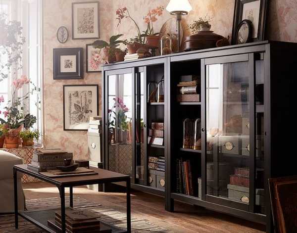 Если среди жильцов есть любители чтения, для организации зоны отдыха или целой библиотеки подойдут книжные шкафы, которые есть на фото каталога Икеа. Это открытые модели и комбинированные, дополненные закрытыми секциями. В ассортименте вместительные, компактные и угловые модели. Если книг много, создайте комбинацию из нескольких стеллажей. Выбирайте глухие или прозрачные стеклянные дверцы.