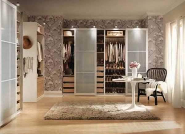 - гардеробная комната или отдельное помещение (продемонстрировано в каталоге ИКЕА), выделенное только под хранение вещей, и где можно одежду выбрать, погладить, надеть и оглядеть себя с ног до головы в зеркале, установленном тут же.