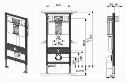 Стандартная инсталляция для унитаза подходит в том случае когда в помещении или рядом с ванной, отсутствуют какие-либо ограничения по габаритным размерам и глубине установки. Как правило она имеет следующие размеры (+/-): ширину 50 см, монтажную глубину 12 см. и монтажную высоту 112 см. Чаще всего используется в стандартных квартирах, имеющих небольшие санузлы. В таком случае на габаритные размеры инсталляции обращать внимание нет необходимости. Фото инсталляции стандартного размера вы можете видеть выше, где мы рассматривали устройство инсталляции.