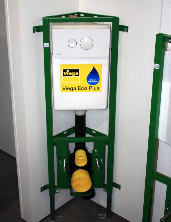 Если ситуация с местом под инсталляцию вообще печальная, то есть нет свободного участка стены или пола, чтобы ее установить, тогда на помощь придет угловая рама. Габариты инсталляции унитаза рамочного типа составляют обычно 50-60 см – ширина и 15-30 см – глубина. Высота при этом должна подбираться индивидуально. В среднем она равна 1,4 м, хотя часто применятся и 80 см.