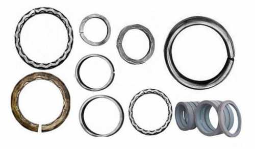 - Кольца. Создается этот элемент довольно просто: на болванку станка накручивается прут круглого или квадратного сечения, в результате получается пружина, которую затем разрезают на отдельные кольца.