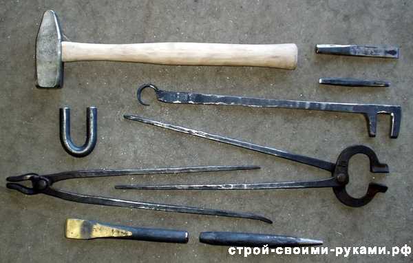 Выполнение любых работ по ковке металла невозможно без специального инструмента. Кузнечный инвентарь для горячей ковки достаточно разнообразен и включает в себя наковальню, горн, различные молоты, клещи и прочее. Инструмент для холодной ковки несколько попроще и состоит из нескольких специальных станков. Конечно, современный инструмент, такой как сварочный аппарат, болгарка и шлифмашинка, используется как в холодной, так и в горячей ковке. Зная о назначении того или иного инструмента, можно правильно выполнять любые работы.