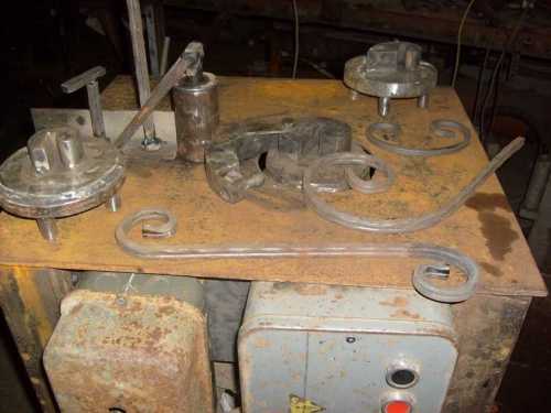 Гибка. Эта технология ковки заключается в загибании концов либо другой части заготовки под определенным углом. Сама гибка выполняется практически на всех станках холодной ковки. Процесс гибки можно проследить при изготовлении заготовки на станке Улитка. Вначале конец заготовки помещается внутрь специального шаблона и затем загибается под определенным углом. Эти работы выполняются на станке Улитка.