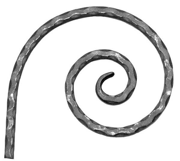 Закручивание. Данная технология ковки подразумевает скручивание заготовки вдоль своей оси. Как и в холодной ковке, заготовку зажимают в тиски и проворачивают. Но в отличие от холодной ковки, можно нагревать заготовку локально, что дает возможность легко делать локальное закручивание.