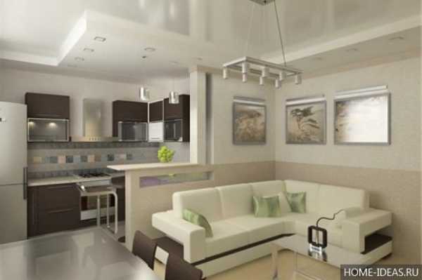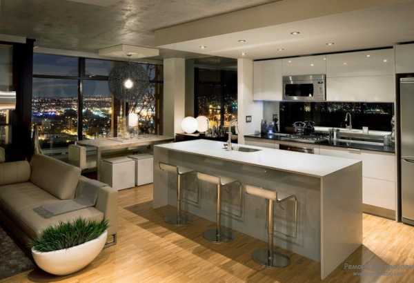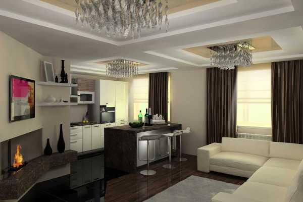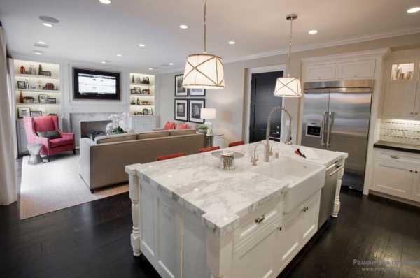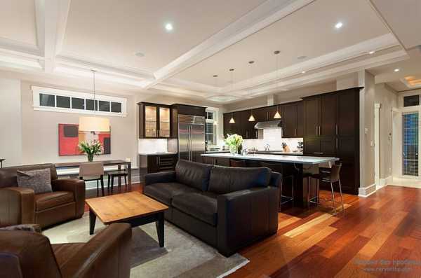 Дизайн гостиной совмещенной с кухней. Более 40 фото