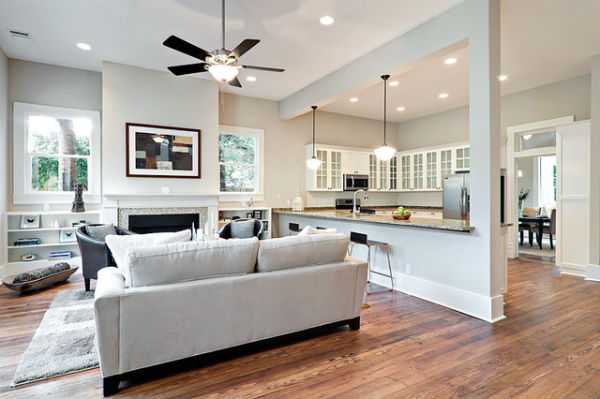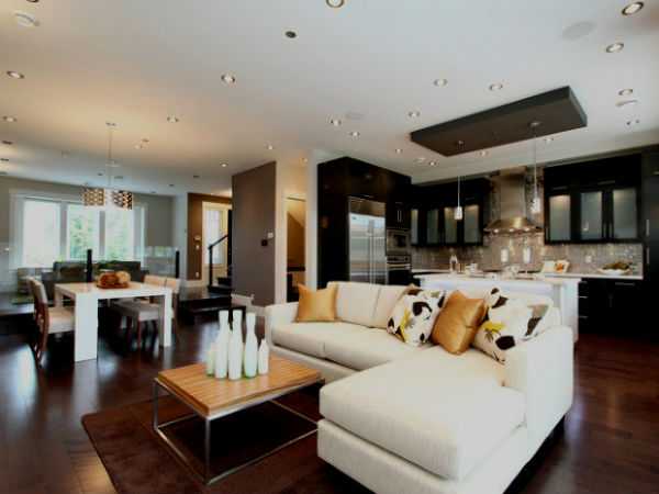 Если Вы строите частный дом, то Вам не придется заниматься перепланировкой пространства. Вы можете с самого начала продумать планировку интерьера кухни, совмещенной с гостиной в доме. Определите заранее, сколько зон Вы хотите выделить. Учитывайте то, что Вам должно быть не только комфортно находиться и отдыхать в помещении, но и удобно готовить и убираться в нем.