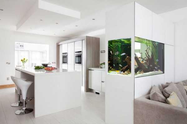 В роли ограждений могут выступать ряды живых растений, красивые подсвеченные аквариумы, ширмы или оригинальные шторы.