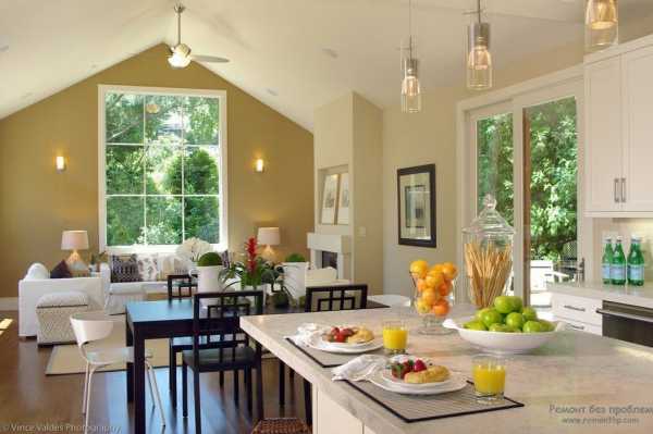 Здравствуйте, уважаемые читатели! Согласно последним тенденциям, многие частные дома и квартиры планируются таким образом, чтобы одно большое по площади помещение выполняло одновременно две функции, а именно играло роль кухни и гостиной. Ну а чтобы дизайн гостиной, совмещенной с кухней, воспринимался наиболее положительно, при ремонте необходимо уделить вниманию логичному расположению мебели, цветовой гамме помещения, приобрести подходящую вытяжку и т.д. В целом, об этом всем и многом другом, как раз и пойдет речь в данном обзоре.