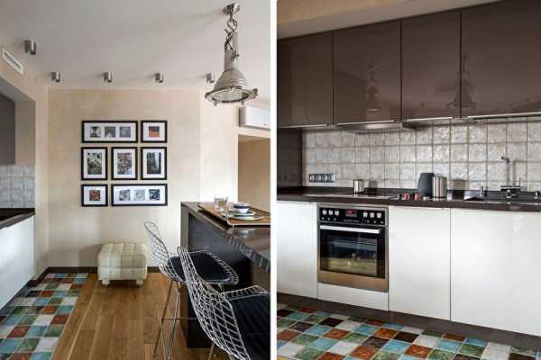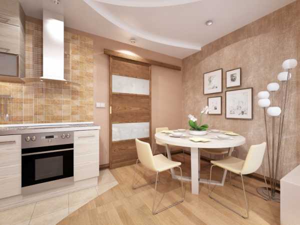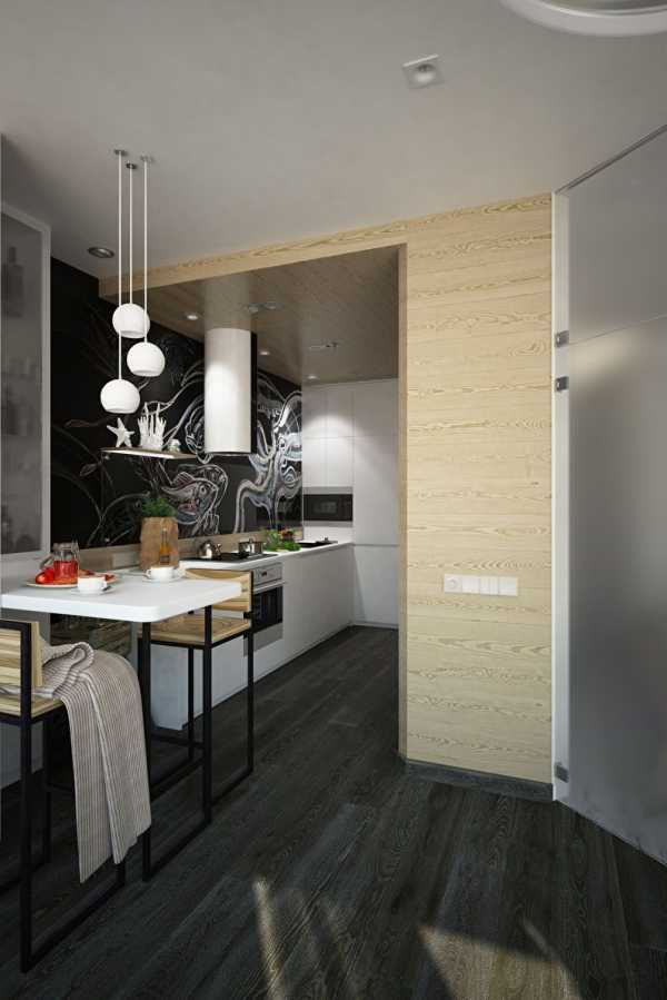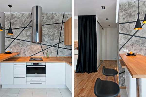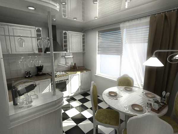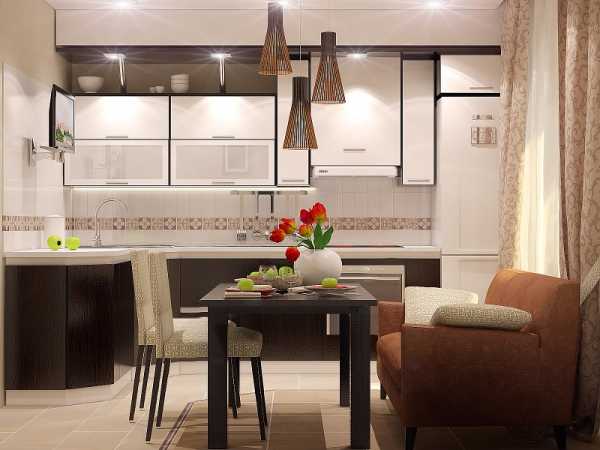 Важно: Не пытайтесь подчеркивать разделение обеденной и кухонной зон контрастными отделочными материалами! Такое дробление сделает помещение визуально еще более маленьким и тесным.