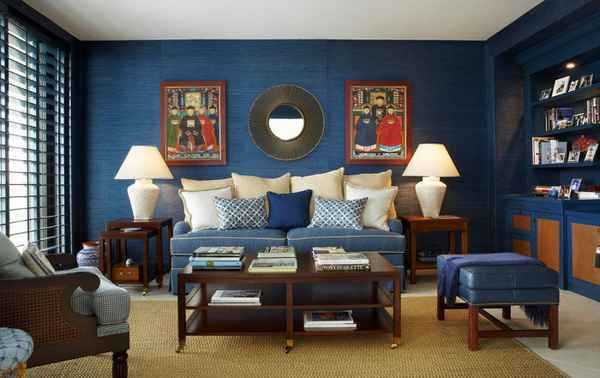 Противоположная тенденция: для придания комнате глубины стены красят в довольно темные насыщенные тона. На пике популярности изумрудно-зеленый и особенно темно-синий. Эти цвета достаточно спокойны, их интенсивность не переутомляет.
