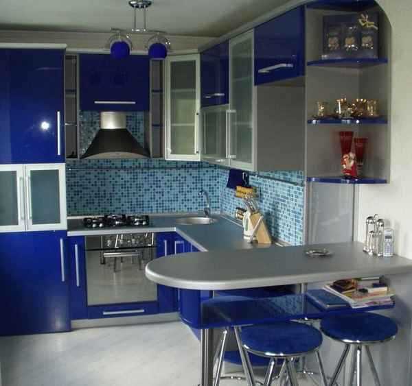 Планировка малогабаритных квартир советских времен совершенно обделила кухонное пространство. В 6−9 квадратов нужно втиснуть зону приготовления пищи с соответствующей техникой и мебель для хранения продуктов и кухонной утвари. Используйте только самое необходимое: плиту, мойку, холодильник, разделочную поверхность с тумбой, а также парочку навесных шкафчиков для круп и посуды.