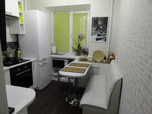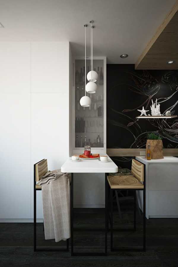 В обеденной зоне поставьте раскладной стол-трансформер, пользуясь советами Dekorin https://dekorin.me/raskladnoj-kuhonnyj-stol-foto/. Если позволяет место, дополните его компактным диванчиком. Исходя из потребностей семьи, он может быть со спальным местом или с ящиком для хранения кухонных принадлежностей.