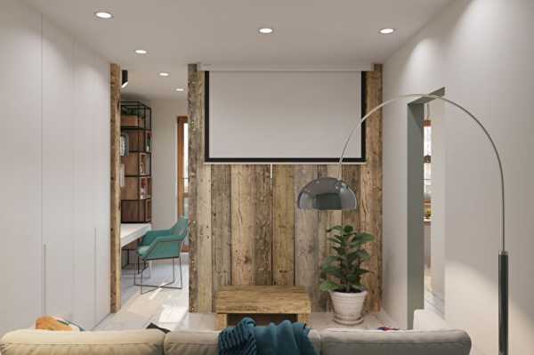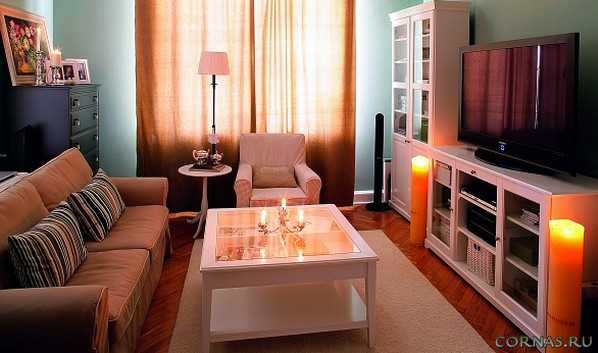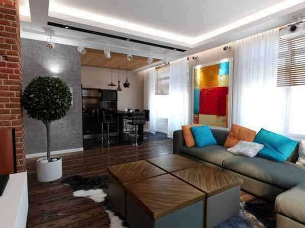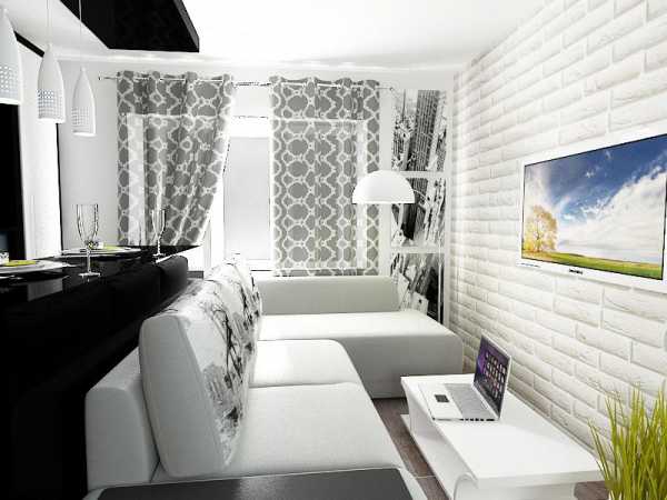 В остальной же части квартиры можно с успехом разметить полноценную гостиную комнату, с диваном и и всем любимым телевизором или домашним кинотеатром.