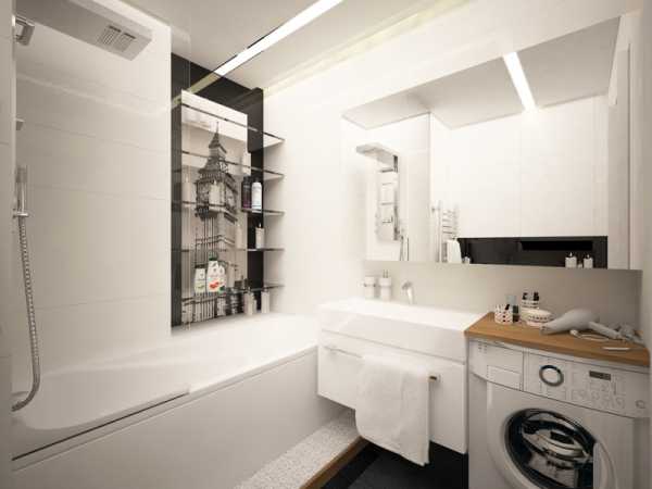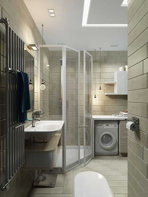 В маленьких квартирах санузел, как правило, совмещенный. Если же он разделен на ванную комнату и туалет, перегородку можно демонтировать — это несколько увеличит площадь. Откажитесь от ванной в пользу душевой кабины, а освободившееся место отдайте стиральной машине.