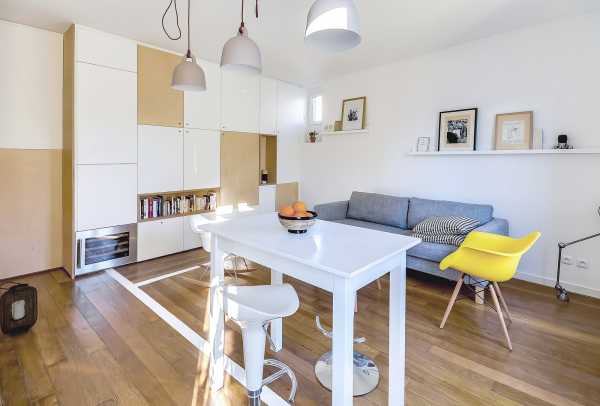 Жилье состоит из спальни, гостиной, кухни, небольшой столовой, ванной и вместительных мест хранения. Чтобы достичь такого результата, дизайнер взяла за основу принцип функциональности, использовав каждый квадратный метр, при этом сохраняя тот самый желаемый простор и легкость.