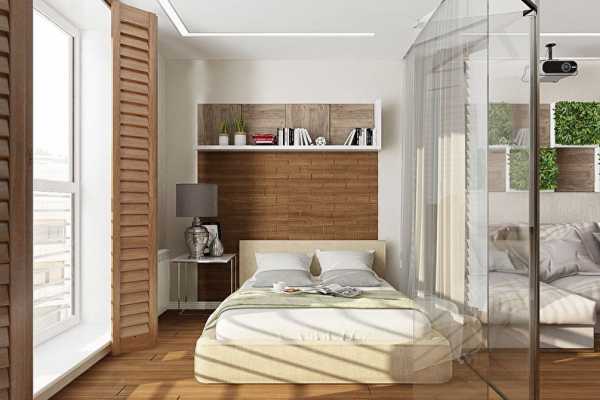 А если вы хотите, чтобы в вашу спальную попадал утренний солнечный свет, тогда есть смысл перенести эту зону ближе к окну. Но тут стоит отметить, то что глухие перегородки для отделения спальни от гостиной можно использовать только в том случае если комната выходит на две стороны и в ней есть два окна. В противном случае, чтобы не затенять гостиную зону, стоит воспользоваться раздвижными или стеклянными перегородками. Хорошей альтернативой могут послужить перегородки из стеклянных блоков, или обыкновенные шторы, которые по мере необходимости можно задвигать или раздвигать.