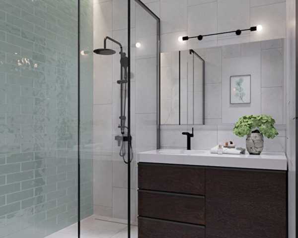Как и весь интерьер маленькой однокомнатной квартиры, ванная требует хорошего освещения. Это также рождает ощущение простора. Здесь пригодятся яркие светильники и многоуровневое освещение.