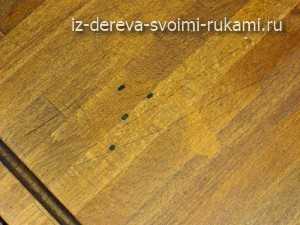 Отверстия заполняют темной шпаклевкой, имитирующей скопление пыли: