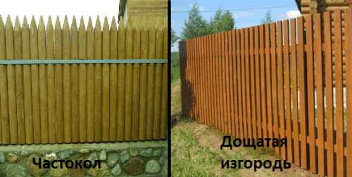 Существует два вида деревянных заборов: дощатая изгородь и частокол.