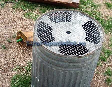 Измельченная трава собирается в ведро, которое нужно предусмотрительно подставлять под выходное отверстие. Понятно, что выбирая высоту стоек для агрегата, следует учитывать, что ведро обычных параметров должно беспрепятственно проходить для размещения его в нужном месте. Так причем же здесь «Тайфун»? Корпус от старого советского пылесоса «Тайфун» идеально подойдет для элементарного садового измельчителя травы: он имеет верхнее отверстие наиболее подходящего размера. Ещё раз повторюсь: это идеальный вариант. Но не единственный!