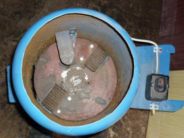 Любая цилиндрическая ёмкость, будь то старая кастрюля, ведро или отрезок трубы тоже подойдут. Двигатель мощностью 180 Ватт можно позаимствовать у старой стиральной машинки. На ножи пойдет старое ножовочное полотно, а в качестве стоек рекомендуется применить прямоугольный профиль 15х15 мм. Вот втулку высотой в 40 мм, на которую будут крепиться ножи, придется выточить на токарном станке.