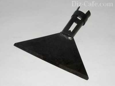 Затачивают нож односторонней заточкой. Он должен быть ориентирован заточенной плоскостью вниз. Если предстоит измельчать свежую траву, лучшей формой ножа будет узкий ромб, чтобы режущая кромка сходила «на нет» под углом к краям. В крайнем случае, можно скруглить лезвие к острию. Тогда трава, на которую воздействует центробежная сила, скользит по режущей кромке ножа прямо к краям. Разрезается она легко и никогда не наматывается на нож.