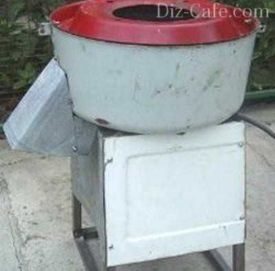 Конечная продукция выходит сбоку. Для этого заранее подставляется ведро. Мощность мотора составляет 180 кВт. Он выбирается от любого аппарата. Для изготовления ножей используется ножовочное полотно. Характеристики такого материала хорошо подходят для режущего инструмента. Чтобы их установить, потребуется выточить втулку. Ее высота должна быть 4 мм.