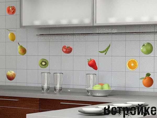Полезный советЕсли вы не планируете менять уже имеющуюся плитку в ближайшие годы, но желание улучшить интерьер своей кухни у вас появилось уже сейчас, имеет смысл приобрести специальные наклейки для кафеля. В продаже можно отыскать самые разные виниловые наклейки – от изображения простеньких цветов до сложных тематических рисунков. Большое значение имеет тот факт, что с помощью подобных аксессуаров можно «завуалировать» места сколов, выбоин и потертостей на кафельной плитке.