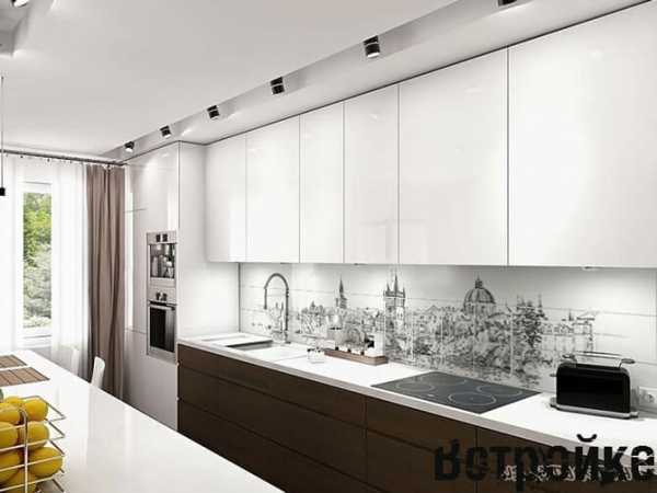 Если на кухне не хватает блеска, глянцевая плитка исправит это. Она создает контраст с белым гарнитуром и, отражая свет, делает пространство визуально больше.