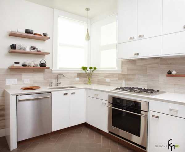 Для кухни в стиле хай-тек идеально подойдет белый или серый цвет кафельной плитки