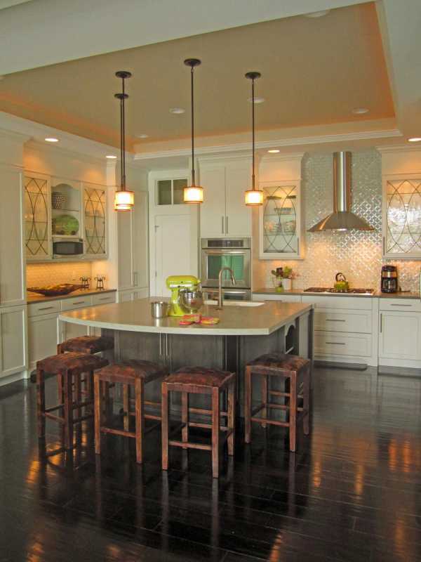 Сложно придумать для кухни более универсальный материал, чем обыкновенная керамическая плитка. Возможности его использования при отделке таких помещений не ограничиваются стандартными решениями. Современные дизайнеры применяют его не только при оформлении кухонного фартука и создании напольных покрытий. Кафельной плиткой сейчас успешно отделываются столешницы и камины, ниши с подсветкой и декоративные панно.